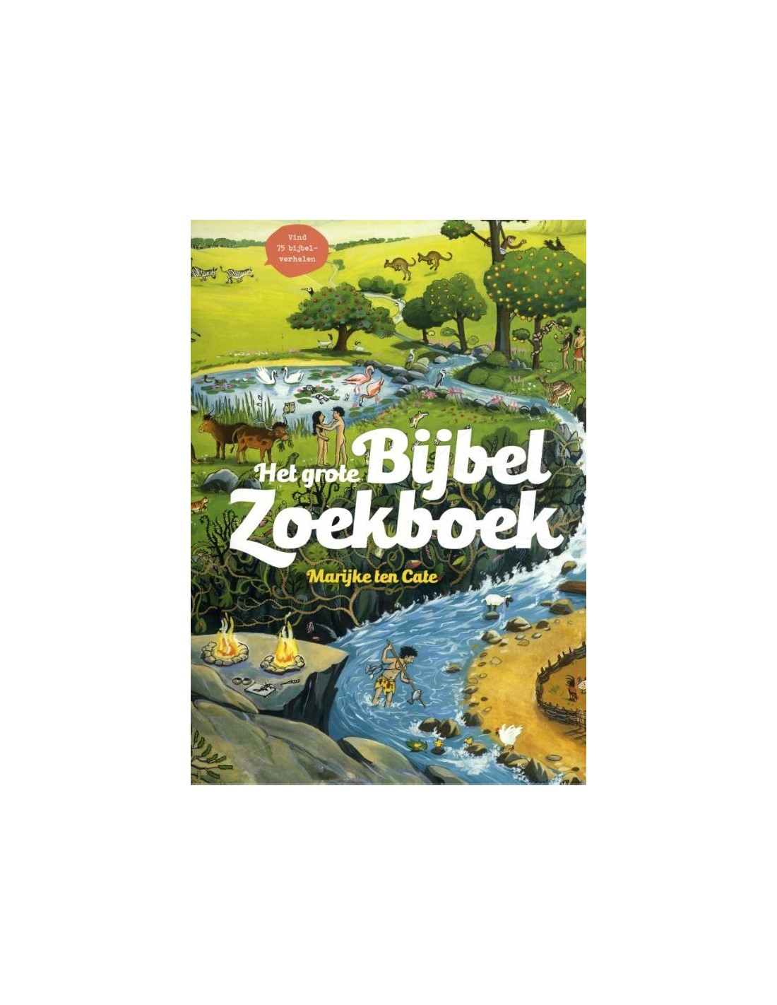De acht megazoekplaten van Marijke ten Cate zitten boordevol Bijbelse scènes. Meer dan 75 verhalen zijn terug te vinden in kleurrijke platen vol Bijbelse details met humor. De Zoekbijbel is opgebouwd rond de verhalen van bekende Bijbelse personen: Adam & Eva, Jakob, Jozef, Mozes, David, Ester, Jezus en Petrus.