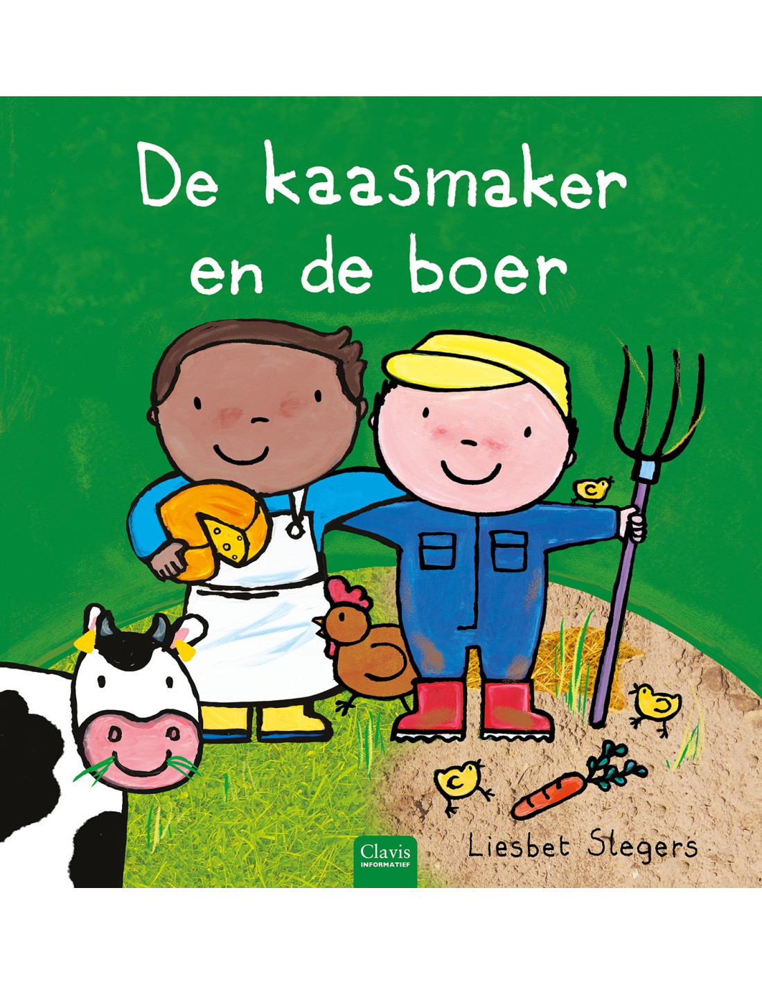 Slegers, LiesbetVan 's ochtends vroeg tot 's avonds laat is de boer in de weer op de boerderij. De boer zorgt er voor alle dieren die er wonen en werkt met de tractor op het veld. Daar groeien aardappelen, maïs en graan.De koeien van de boer geven elke dag verse melk. Een beetje daarvan gaat naar de kaasmaker. Die heeft melk nodig om de lekkerste kaasblokjes en -sneetjes te maken. Hoe dat precies gebeurt, ontdek je in dit boek!Twee leerrijke informatieve boeken op kleutermaatzijn nu samengebracht in één band, met extra spelletjes!