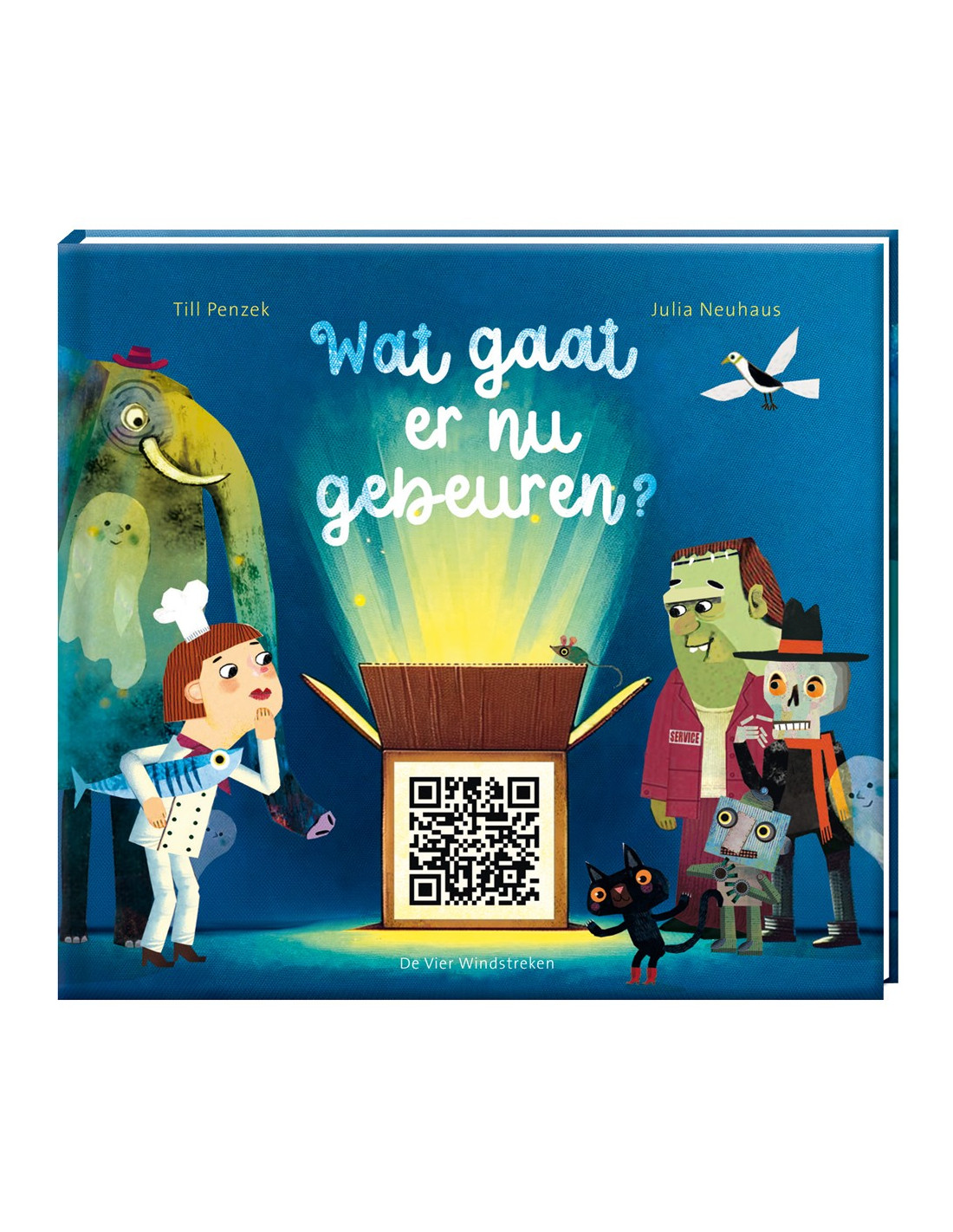 Welk gek idee krijgt de briljante wetenschapper? Gaat het wel goed daar in de keuken? In het spookslot is het vast niet pluis...Tien afbeeldingen die je uitnodigen om verhalen te verzinnen, want iedereen vraagt zich af: 'Wat gaat er nu gebeuren?'Wie vervolgens de QR-code scant, beleeft nog meer grappige verhalen in de vorm van animaties. Bovendien is het goedmogelijk dat je de volgende keer dat je de code scant een andere variant ziet... Probeer het maar!