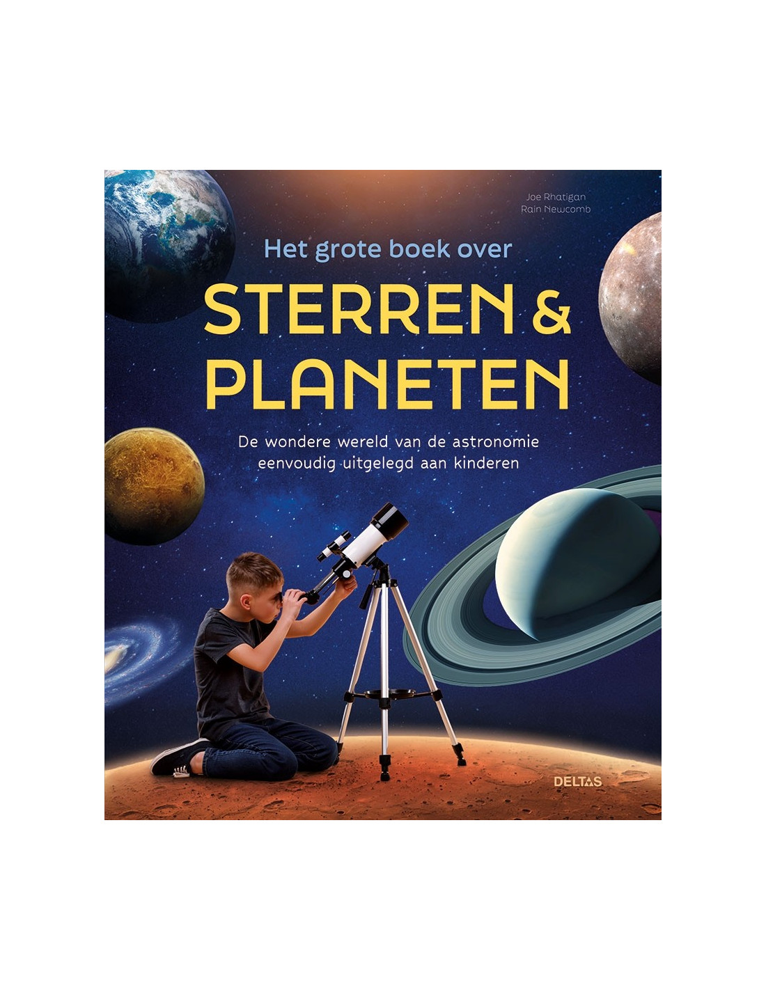 Rhatigan, JoeIn dit aantrekkelijke boek over sterren en planeten ga je mee op een boeiende en leerzame reis naar de ruimte. Maak kennis met het mysterieuze heelal en kom een heleboel fascinerende dingen te weten over planeten, planetoïden, kometen, sterren, nevels, zwarte gaten, enzovoort! Bovendien leer je met dit boek ook tal van praktische dingen, zoals een zonneoventje maken, de zeeën van de maan zoeken of je gewicht op Jupiter berekenen. Kortom, een leuk en leerrijk boek voor jonge astronomen en astronauten vanaf ongeveer 8 jaar.