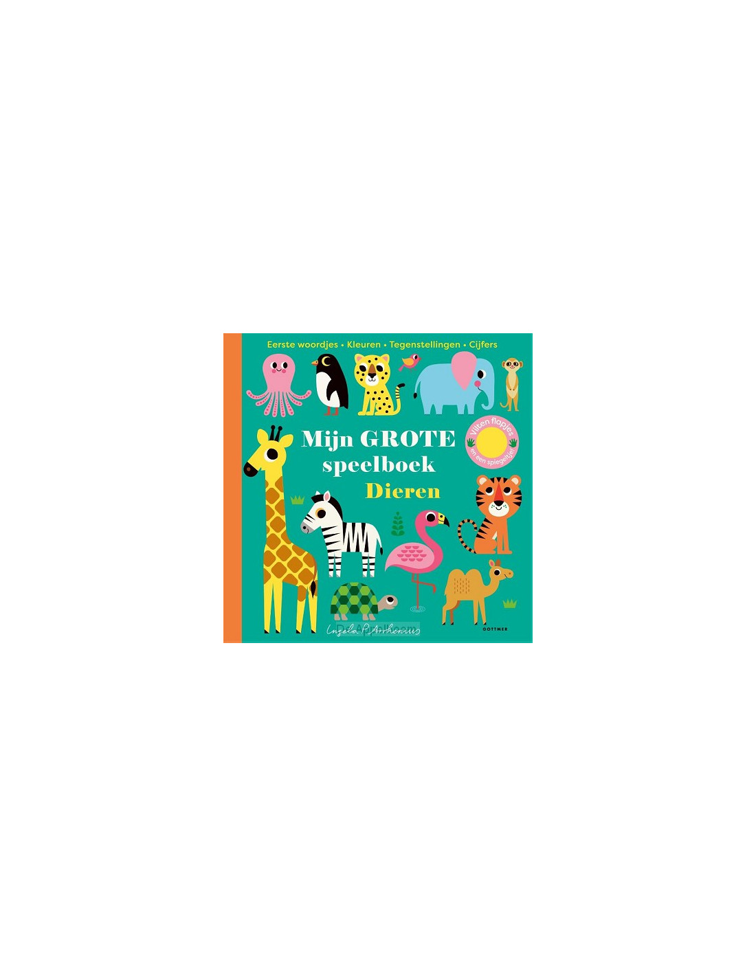 Arrhenius, Ingela P'Mijn grote speelboek Dieren' is een groot kartonboek met alles wat dreumesen en peuters nodig hebben om de wereld om zich heen te kunnen ontdekken: eerste woordjes, dierennamen, kleuren, cijfers en meer! Dit leuke en leerzame dierenboek heeft tien zachte vilten flapjes, doorkijkjes en een verstopt spiegeltje aan het eind. Hoeveel zebra's tel jij? Welke kleur heeft de papegaai? Wat is het tegenovergestelde van groot? Welk geluid maakt een uil? Het prentenboek 'Mijn grote speelboek Dieren' is een feest voor de jonge ontdekker vanaf ongeveer 18 maanden.
