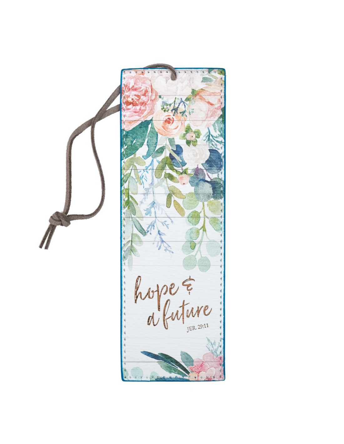 The Hope And A Future PageMarker will remind her that the Lord has good things in store for her—all she needs to do is trust Him. The Hope And A Future PageMarker comes in floral-patterned LuxLeather with 'hope & a future' displayed in script with the Jeremiah 29:11 verse reference below it. A pastel floral design surrounds the message from Jeremiah 29:11 on the Christian pagemarker.
