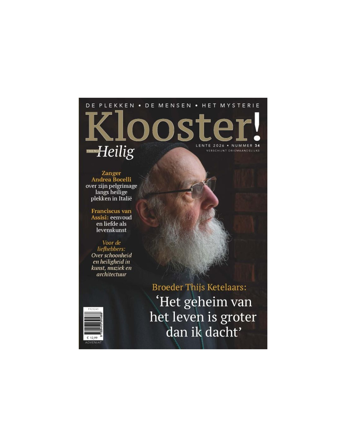 Steeds meer mensen ontdekken de stilte en bezieling van kloosters en vinden in het tijdschrift Klooster! een bron van rust, verdieping en verbinding. Vier keer per jaar ligt er een inspirerende editie op de mat, en online weet het blad wekelijks een groeiendeschare volgers te raken. Ook is er de podcast Kloostergesprekken, waarin Leo Fijen wekelijks met een kloosterling in gesprek gaat.Voorjaar 2026: Heilig? 800 jaar na het overlijden van Franciscus van Assisi? verdieping voor de veertigdagentijd en Pasen? Frans Bauer: 'Het geloof biedt me houvast bij tegenslag'? interview met zanger Andrea Bocelli over zijn pelgrimage langs heilige plekken in Italië