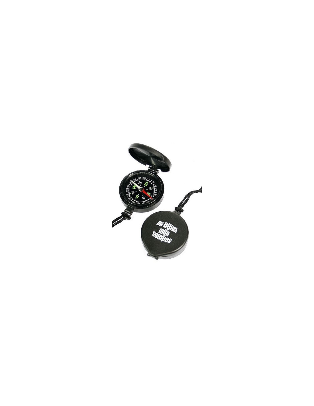 Kompas om te dragen: Kleur, zwart, dia ø 4,5 cm, Terug met opdruk: 'De bijbel mijn kompas',