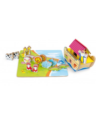 Who doesn't know it? The story of Noah's Ark! Every animal species congregates around the ark to escape the flood. This colourful kit challenges small ship-builders to bring all the animals to safety. The game board and the animals made of wood are painted in bright colours. The animals are easy to identify. Now the journey can start.
