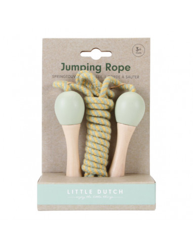 Touwtje springen is een sportieve manier voor kinderen om te bewegen en te spelen. Ze zijn lekker buiten terwijl hun coördinatie wordt getraind. De zachte kleuren oker en groen komen zowel in het touw als in de houten handvatten terug. Laat het springtouw niet buiten of in de regen liggen als je klaar bent met spelen, maar bewaar het op een droge plek.
